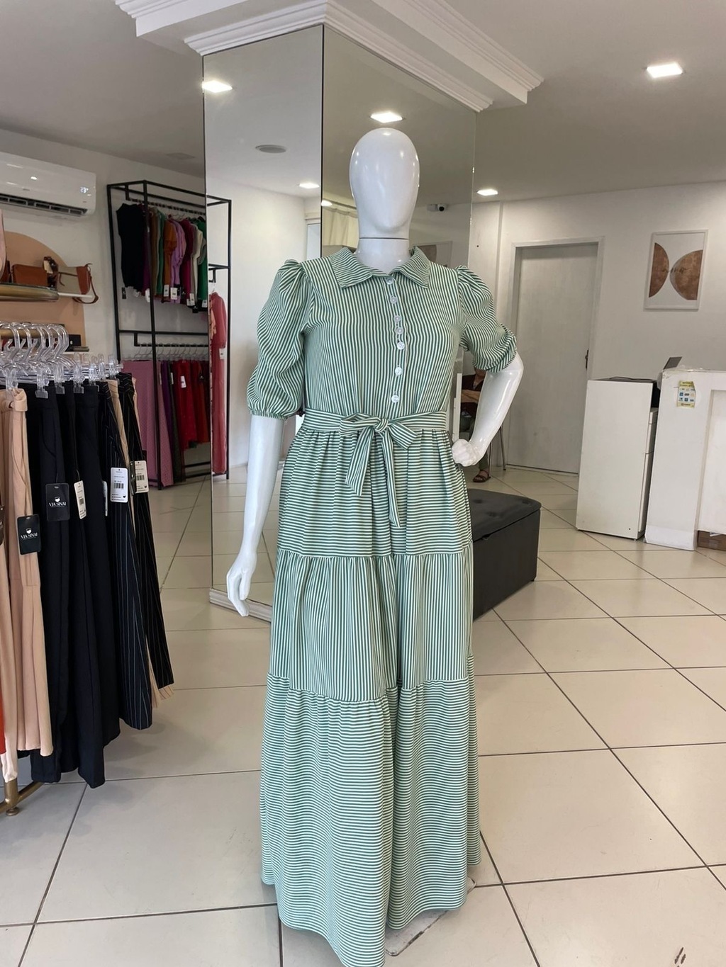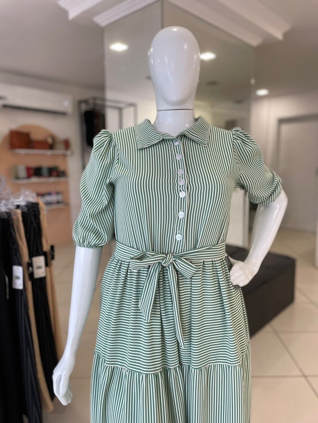 VESTIDO LONGO DUNA BOTÕES VERDE LISTRADO